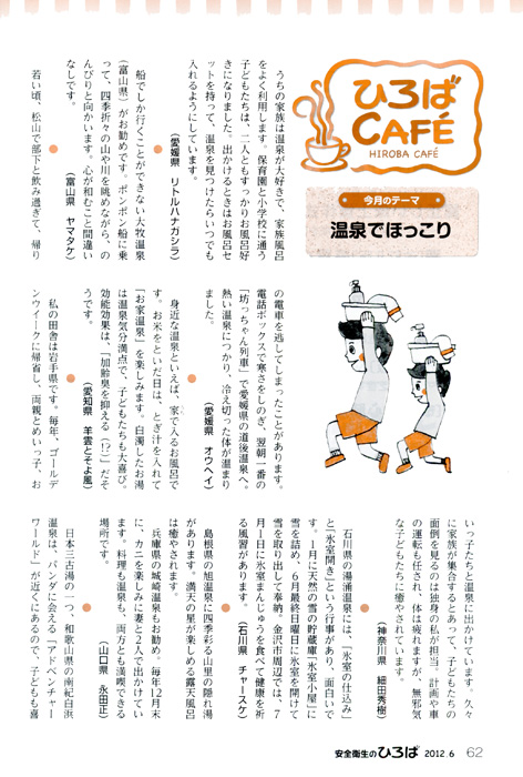 「安全衛生のひろば 6月号」ひろばCAFEコーナーの挿絵を中川貴雄が手がけました。 CL 中央労働災害防止協会 2012年