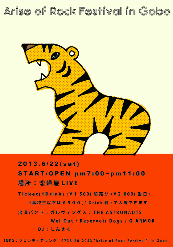 地元、和歌山県・御坊での音楽イベントのフライヤーとチケットのデザイン&イラストを中川貴雄が手がけました。